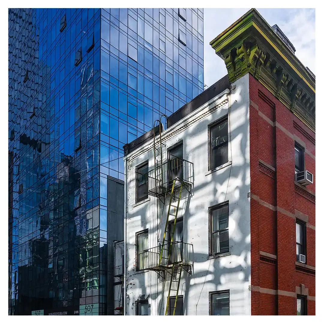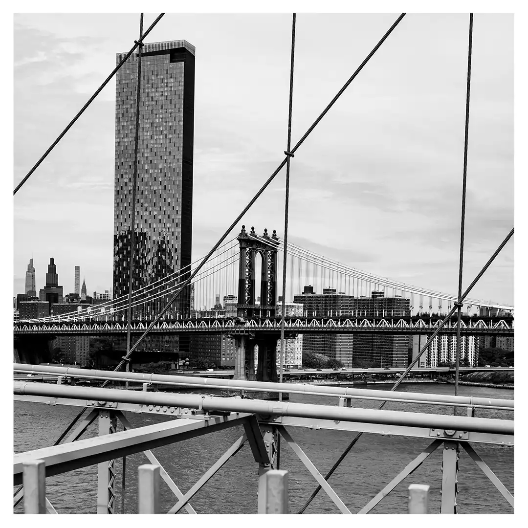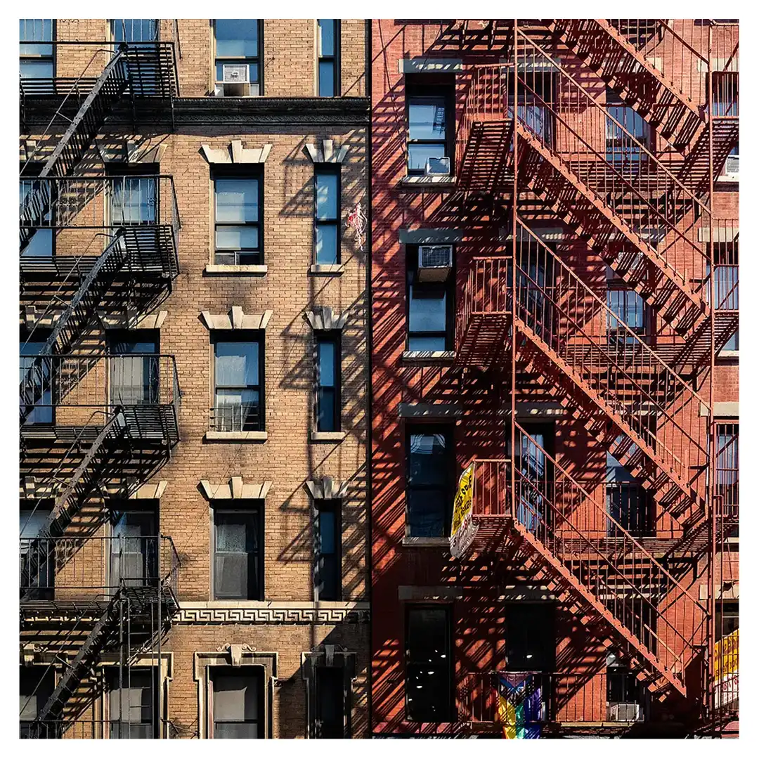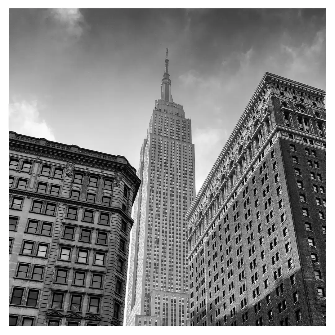 Le format carré impose une stabilité centrale. Il « enferme » la verticalité de Manhattan dans un cadre équilibré, forçant le regard à se concentrer sur le sujet lui-même plutôt que sur sa hauteur infinie.