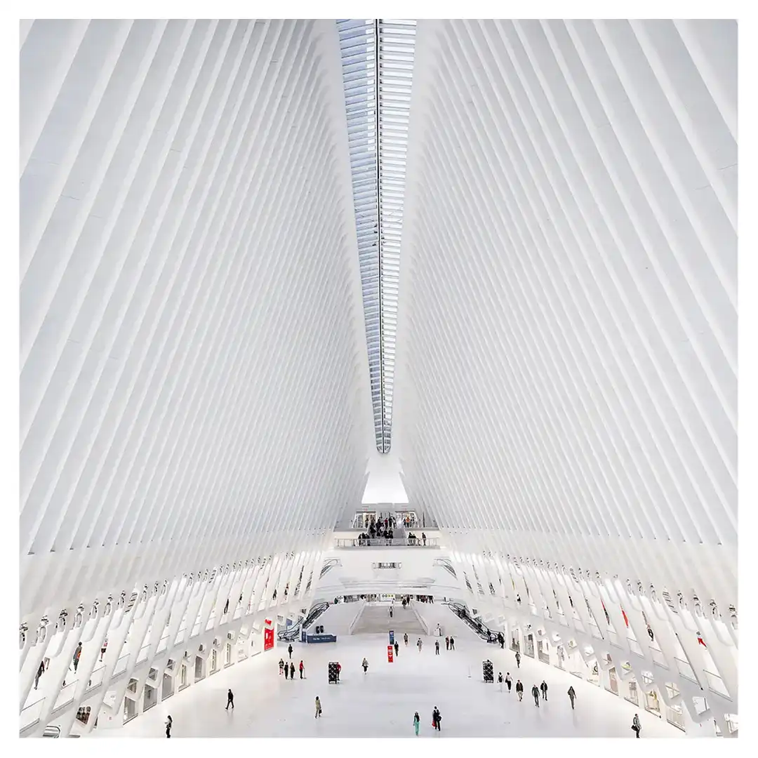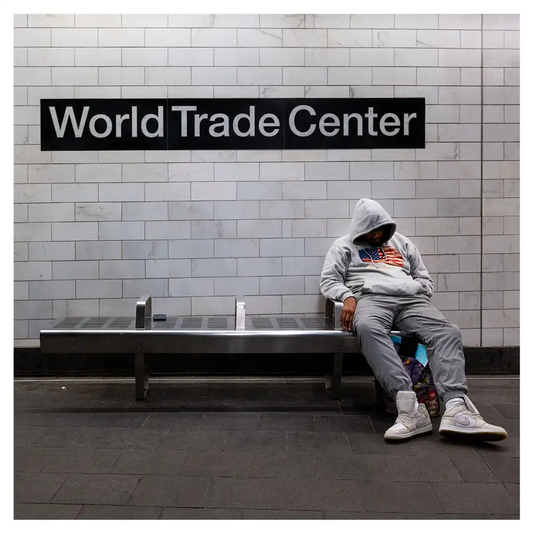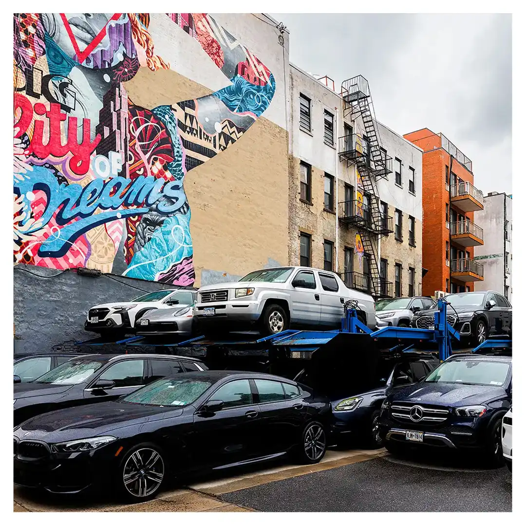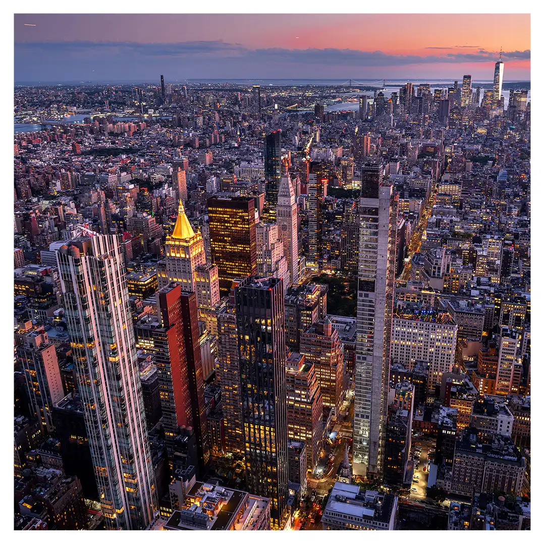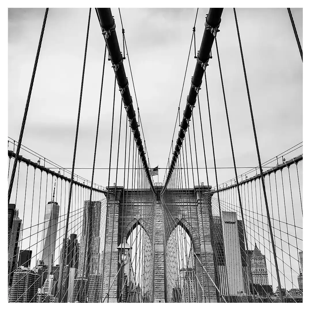 Le format carré impose une stabilité centrale. Il « enferme » la verticalité de Manhattan dans un cadre équilibré, forçant le regard à se concentrer sur le sujet lui-même plutôt que sur sa hauteur infinie.
