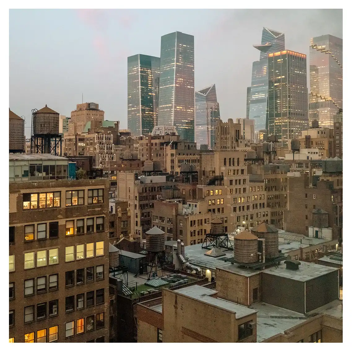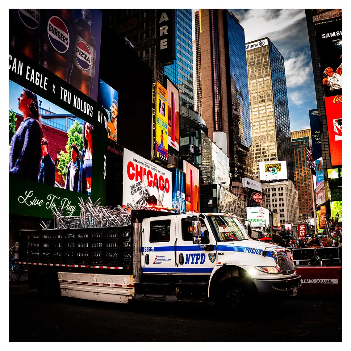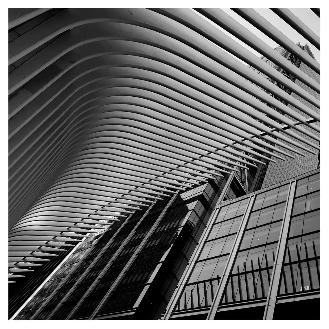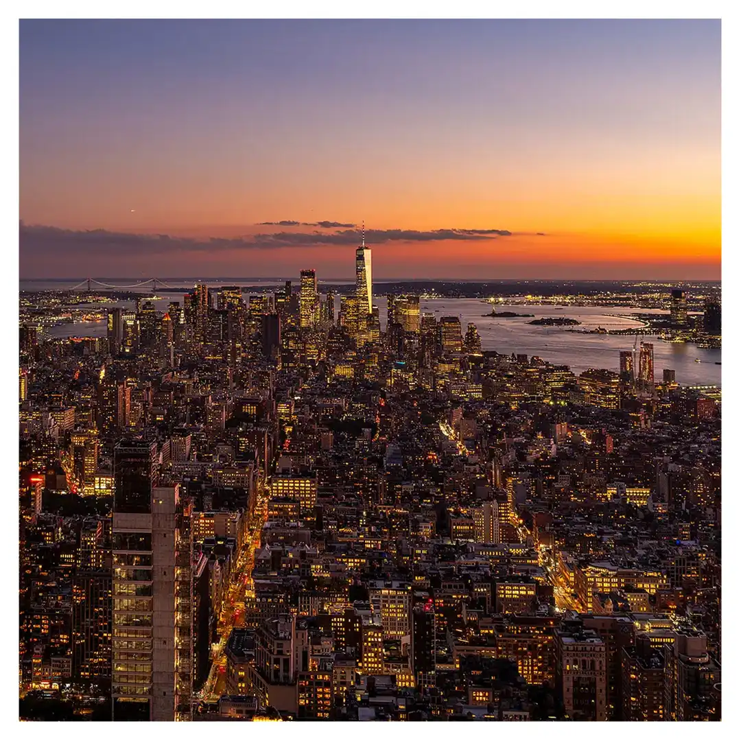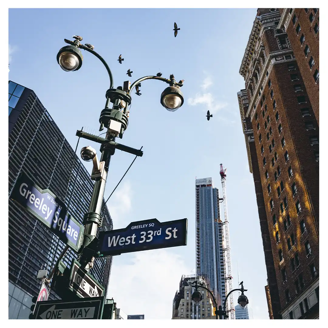 Le format carré impose une stabilité centrale. Il « enferme » la verticalité de Manhattan dans un cadre équilibré, forçant le regard à se concentrer sur le sujet lui-même plutôt que sur sa hauteur infinie.