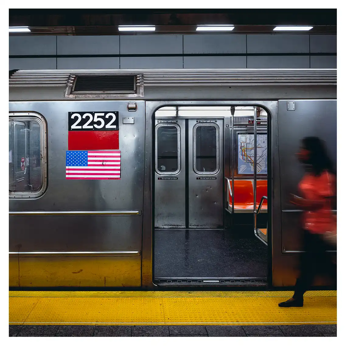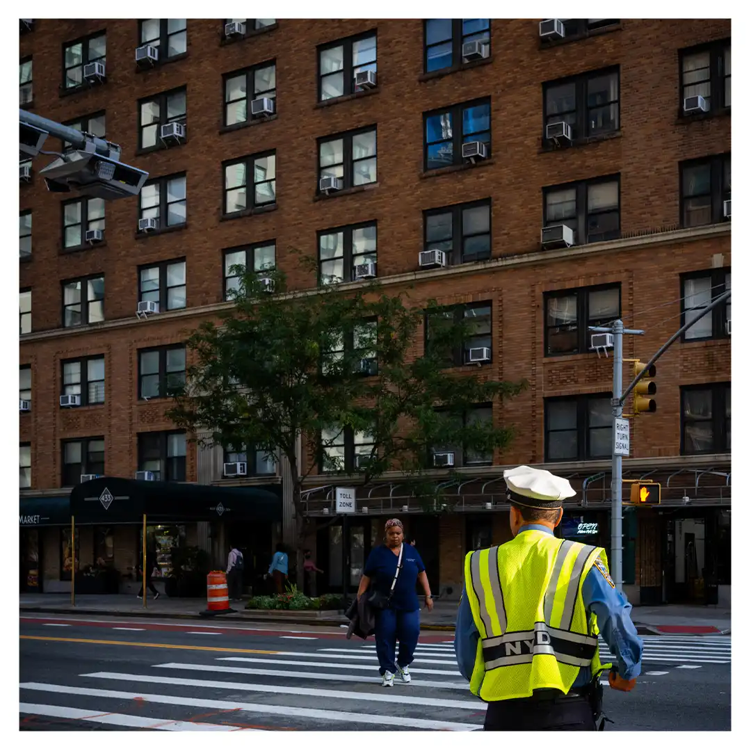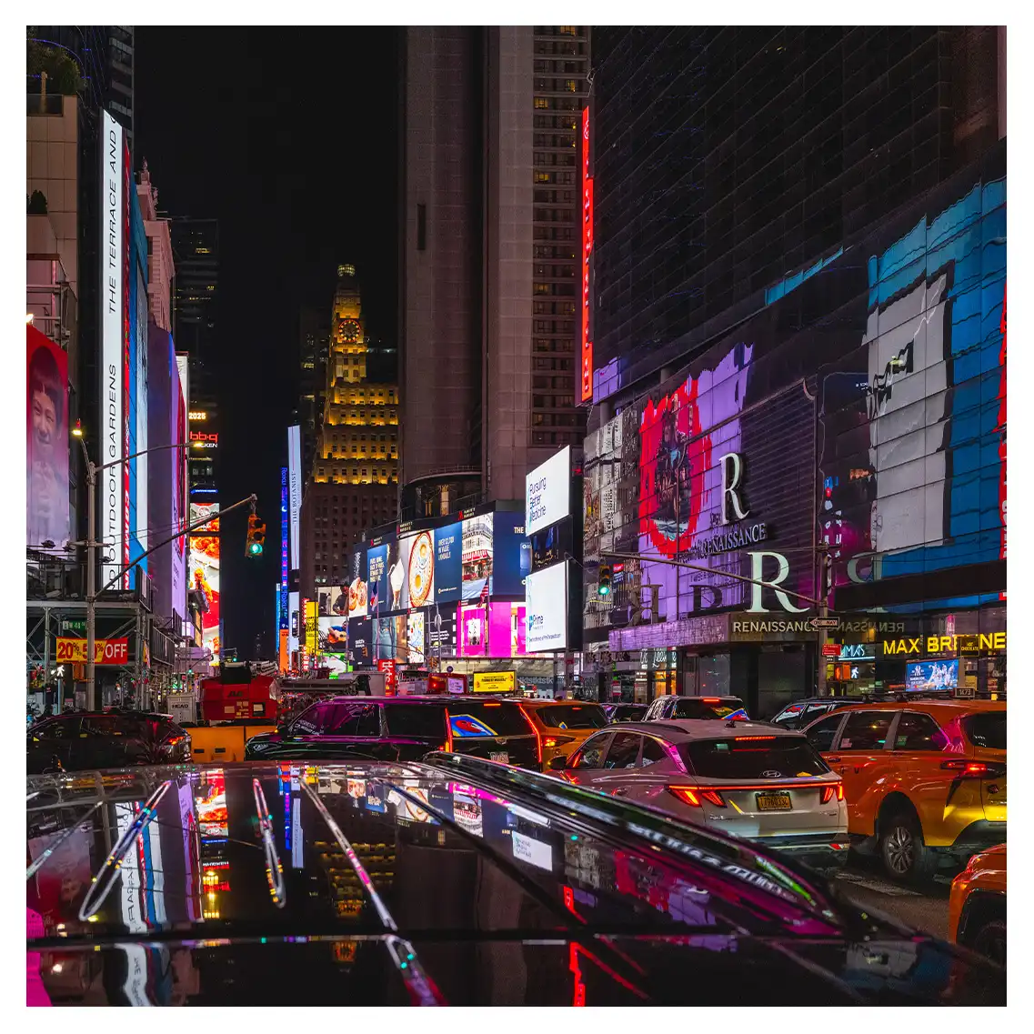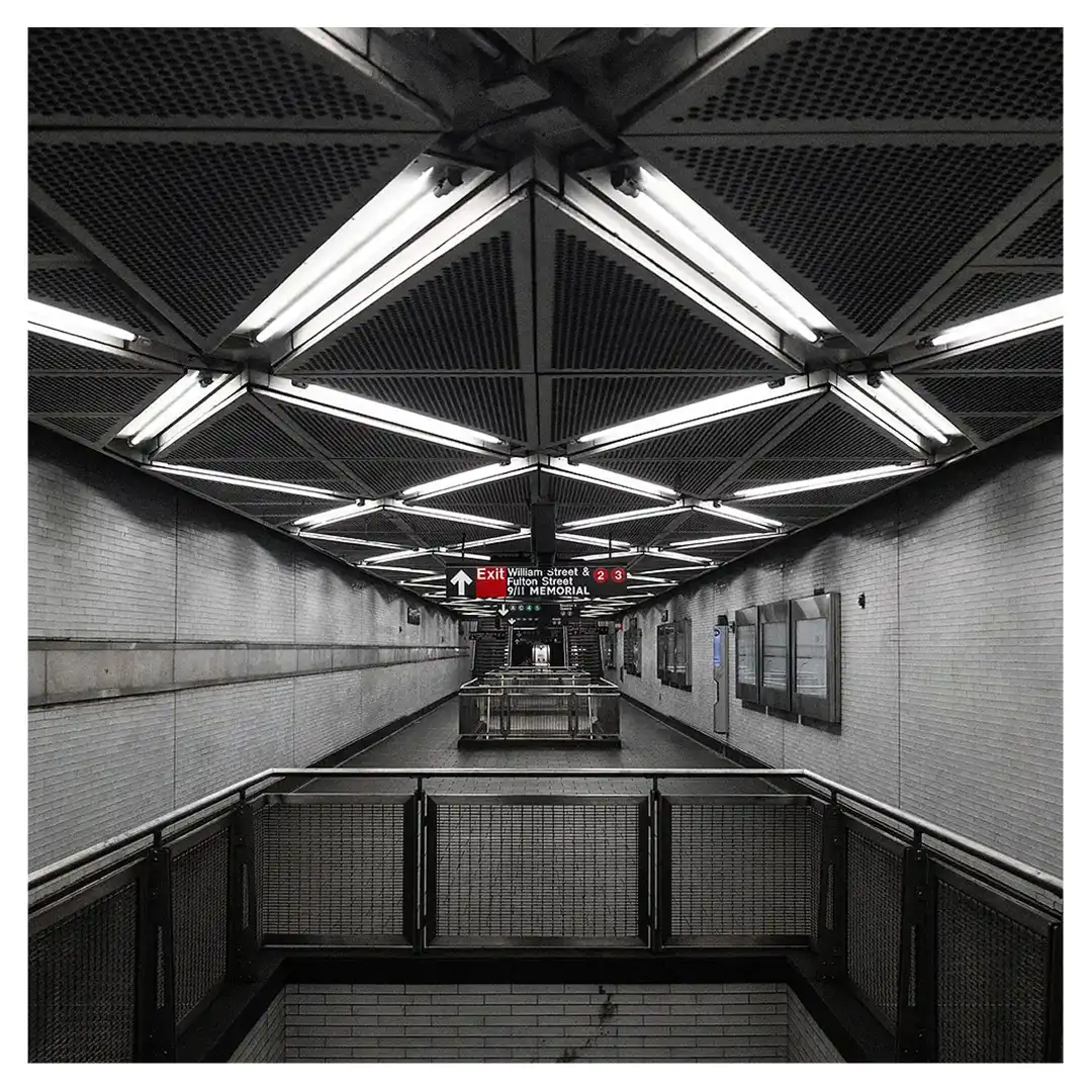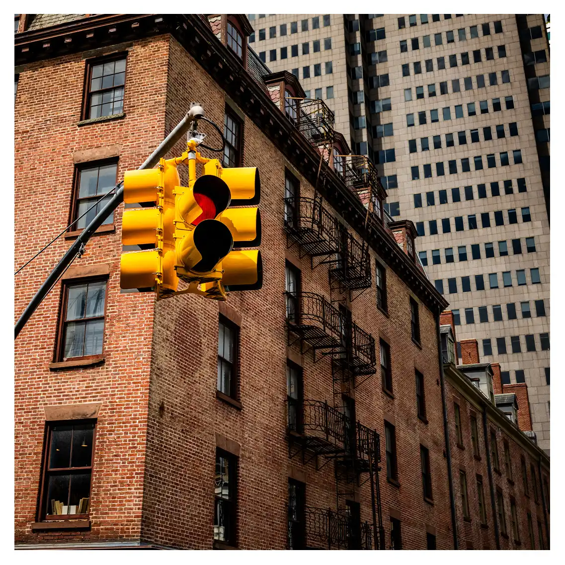 Le format carré impose une stabilité centrale. Il « enferme » la verticalité de Manhattan dans un cadre équilibré, forçant le regard à se concentrer sur le sujet lui-même plutôt que sur sa hauteur infinie.