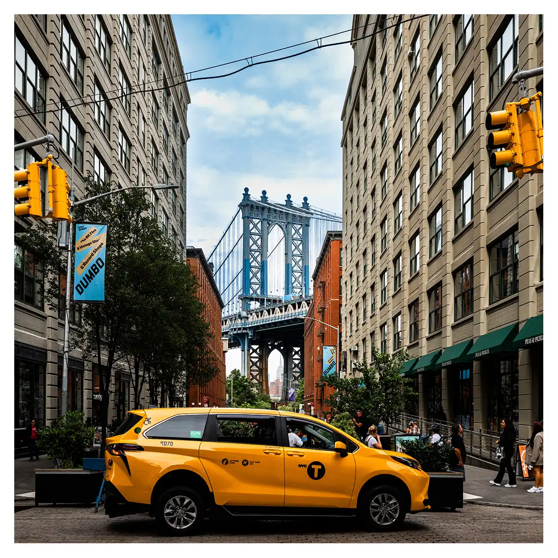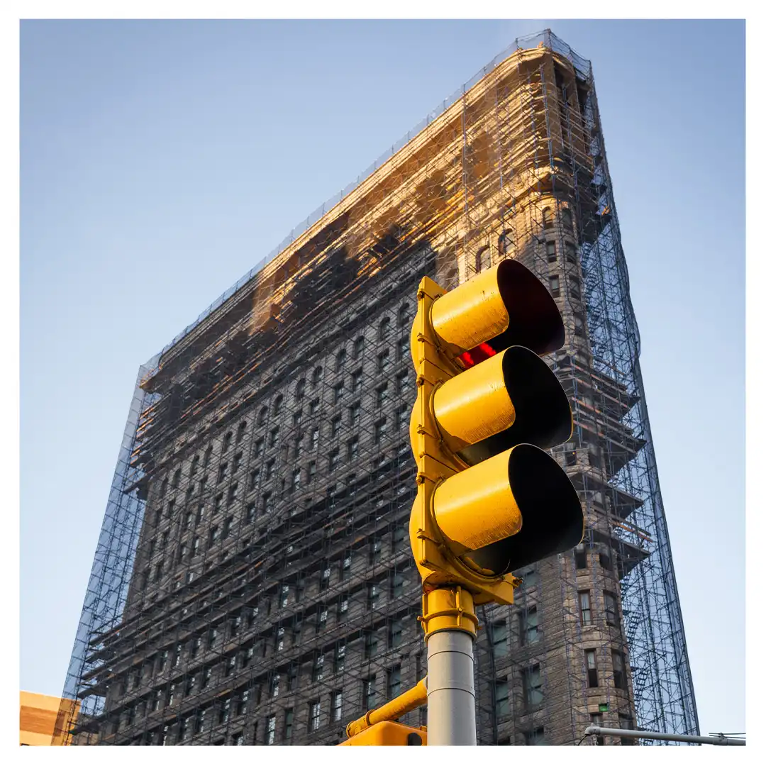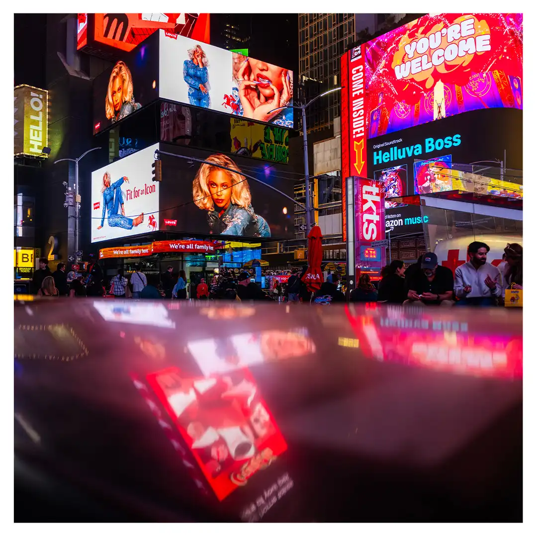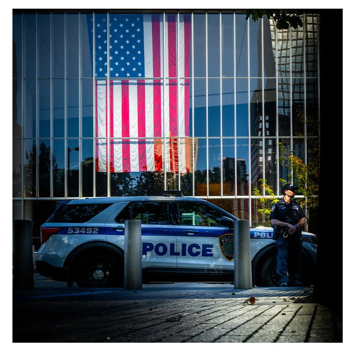 Le format carré impose une stabilité centrale. Il « enferme » la verticalité de Manhattan dans un cadre équilibré, forçant le regard à se concentrer sur le sujet lui-même plutôt que sur sa hauteur infinie.