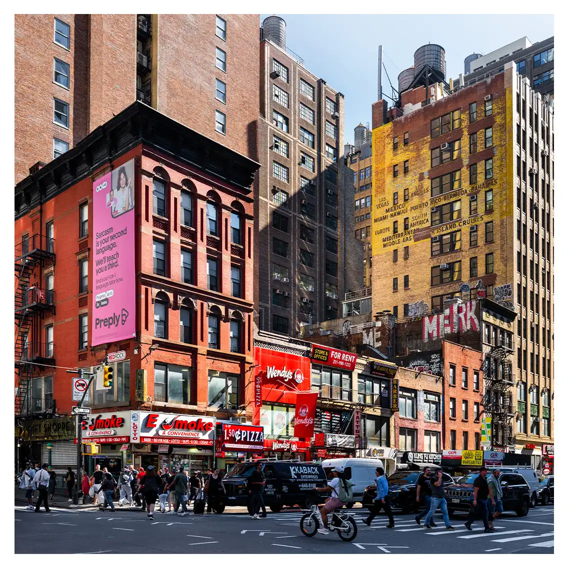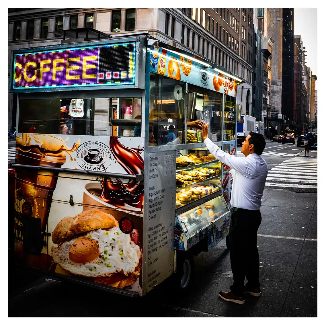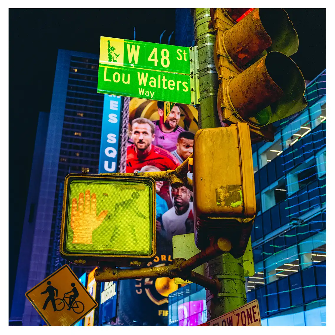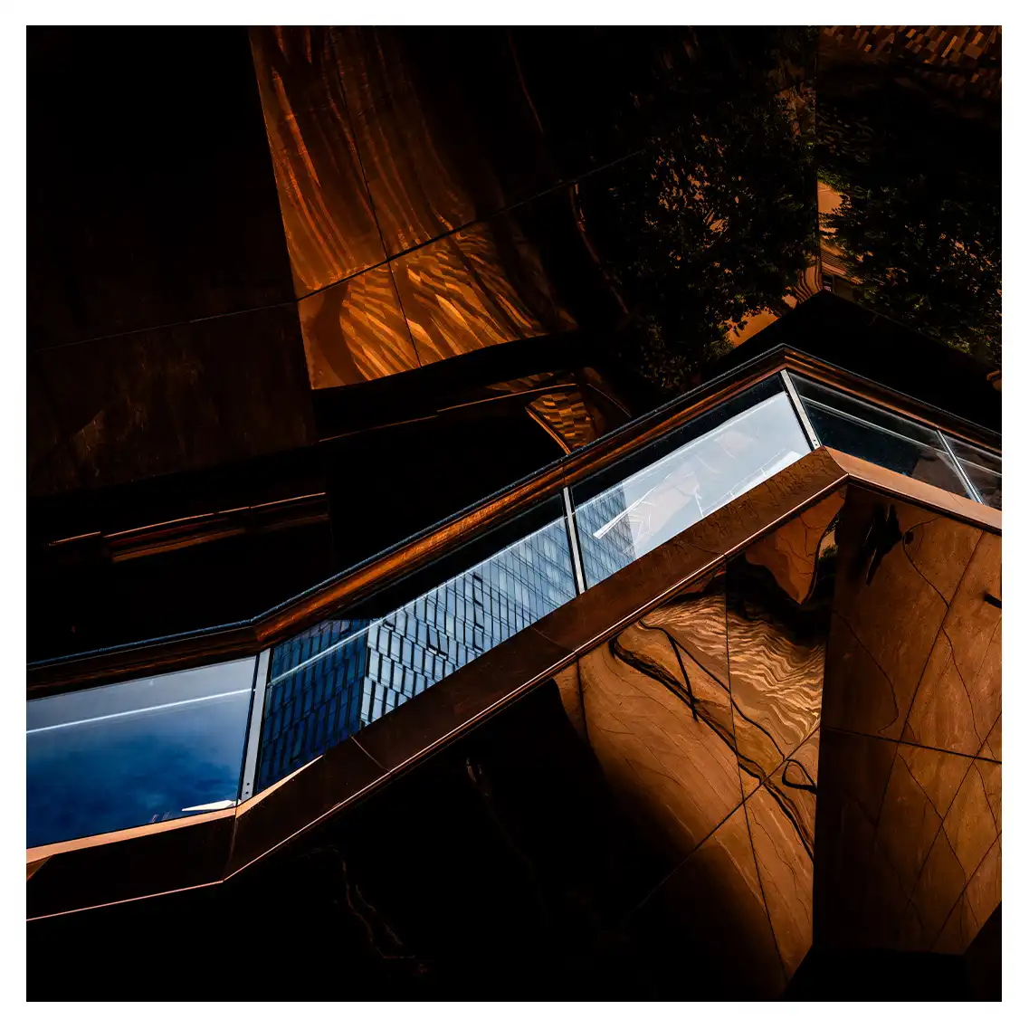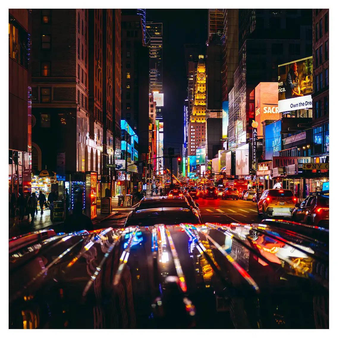 Le format carré impose une stabilité centrale. Il « enferme » la verticalité de Manhattan dans un cadre équilibré, forçant le regard à se concentrer sur le sujet lui-même plutôt que sur sa hauteur infinie.