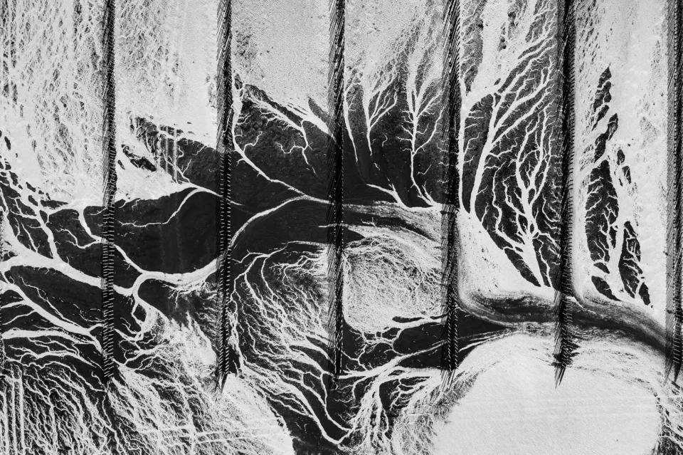 Pendant les grandes marées, certaines baie de Bretagne laissent apparaitre un spectacle des plus graphique avec ces algues qui se déposent sur le sable à marée basse entre les linéaires des parcs à Huîtres. Baie de Fresnaye
