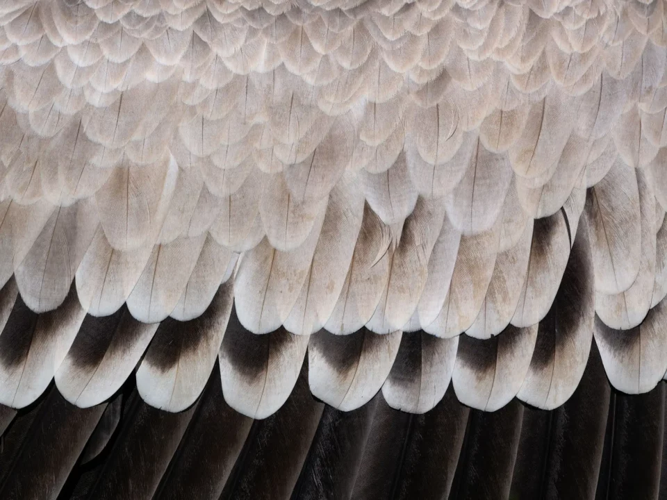 Une immersion au cœur du plumage. Cette photographie de détails révèle l’incroyable complexité des plumes d’une aile de vautour fauve. La répétition des barbes et le dégradé des teintes terreuses créent une structure graphique qui évoque un tissage ancestral. Un tirage idéal pour une décoration aux tons naturels et organiques.
