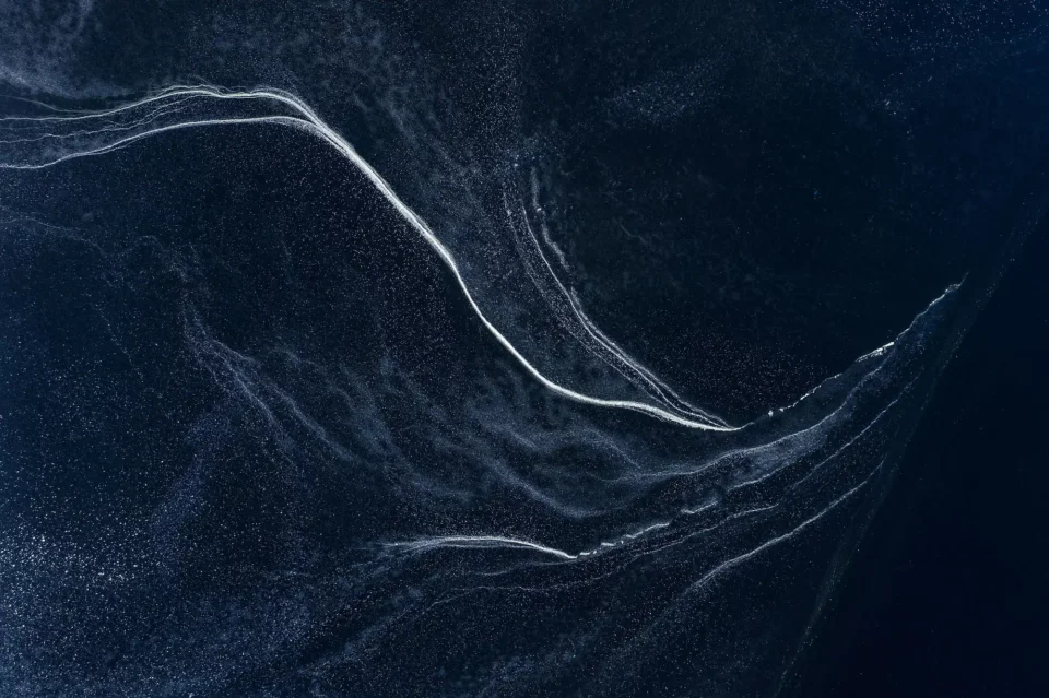 Une fracture de glace sur le lac de Crescent dans le Morvan qui ressemble à une constellation d’étoiles.