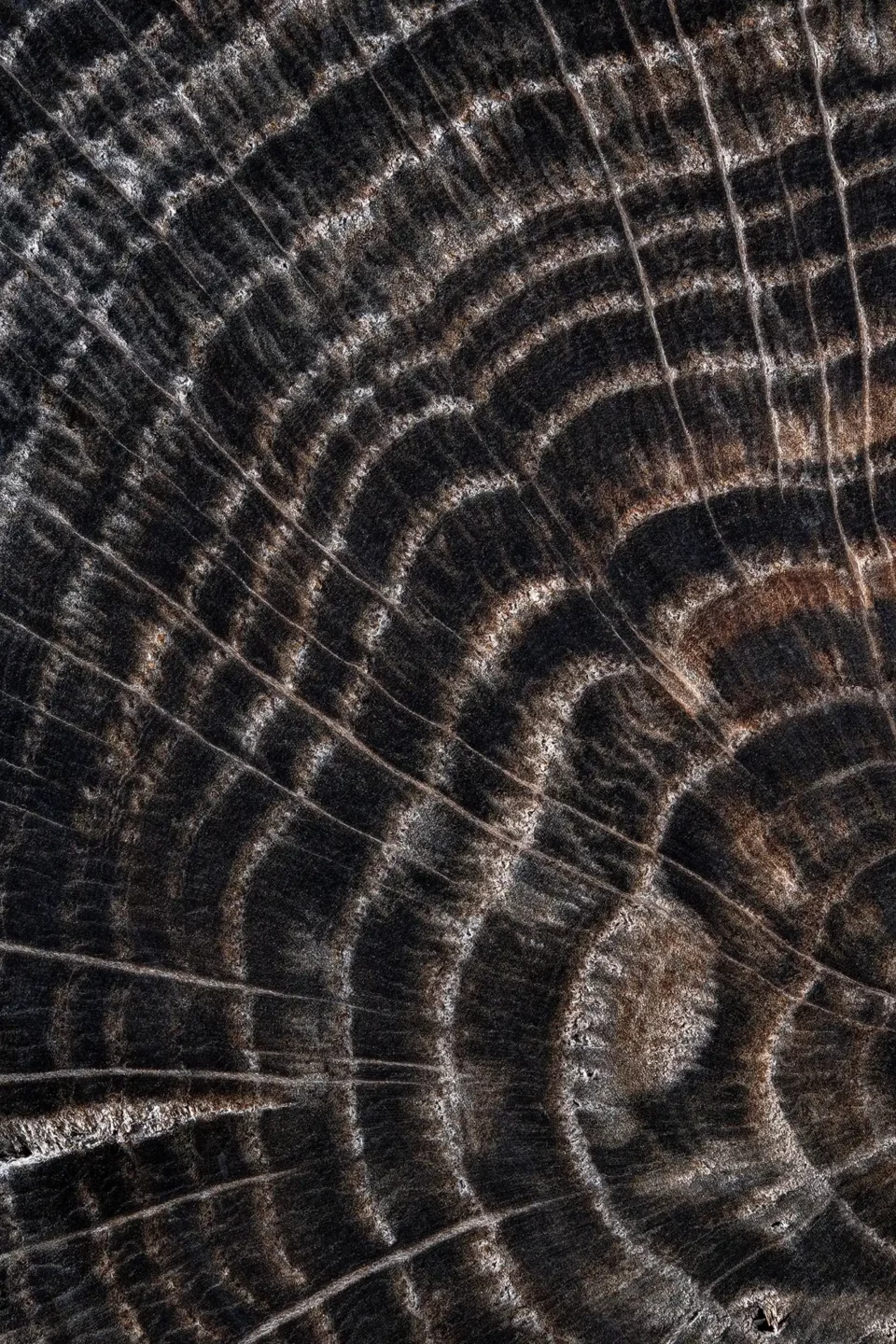 Cette vue macro révèle les veines d’un chêne subfossile extrait des sédiments de la Darse de Bonneuil. Préservé de l’oxygène durant plus d’un millénaire sous la vase de la Marne, ce bois, dont certains spécimens remontent à l’époque carolingienne (v. l’an 800), a subi une minéralisation naturelle. Sa teinte sombre et son grain dense témoignent d’une alchimie millénaire entre le tanin de l’arbre et les sels de fer du fleuve, figeant ainsi un fragment d’histoire médiévale dans une texture quasi pétrifiée.
